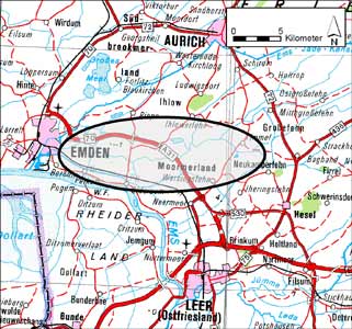 angrenzenden Teile der Ostfriesischen Geest zur Ems hin
